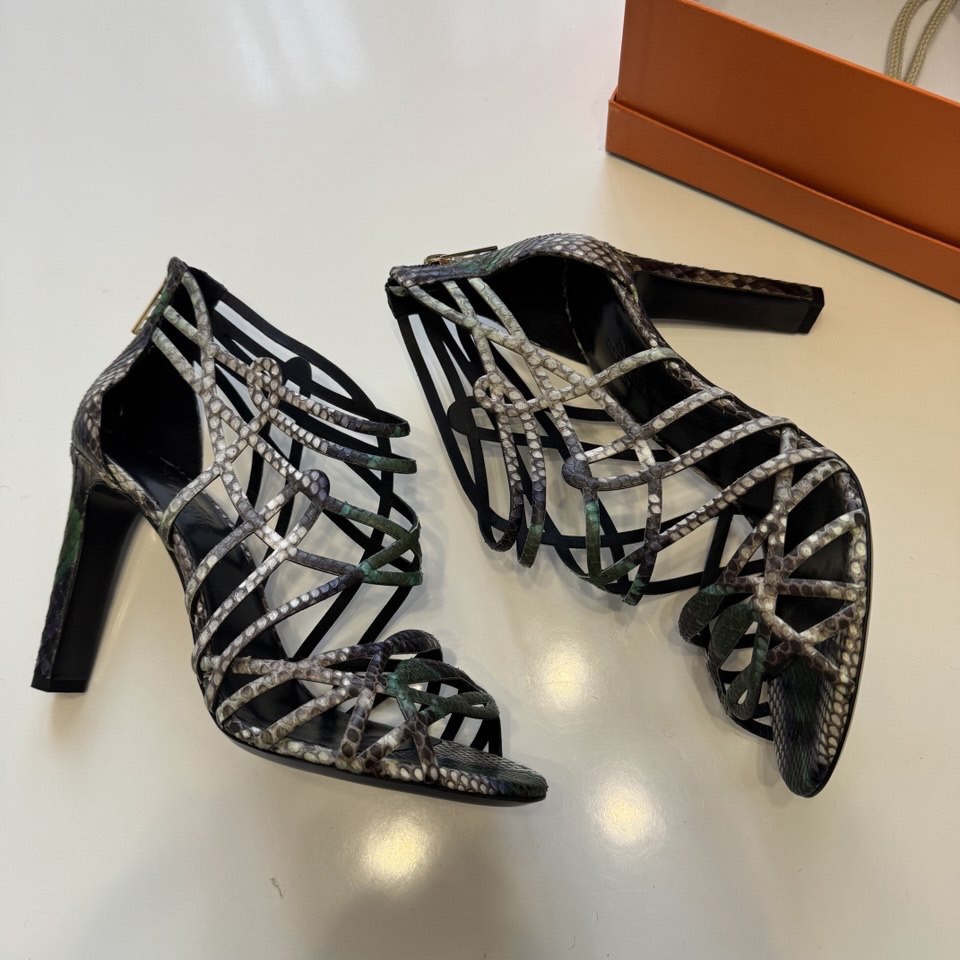 - Каблук: Устойчивая «шпилька» средней высоты (около 10 см), также выполненная из кожи питона.